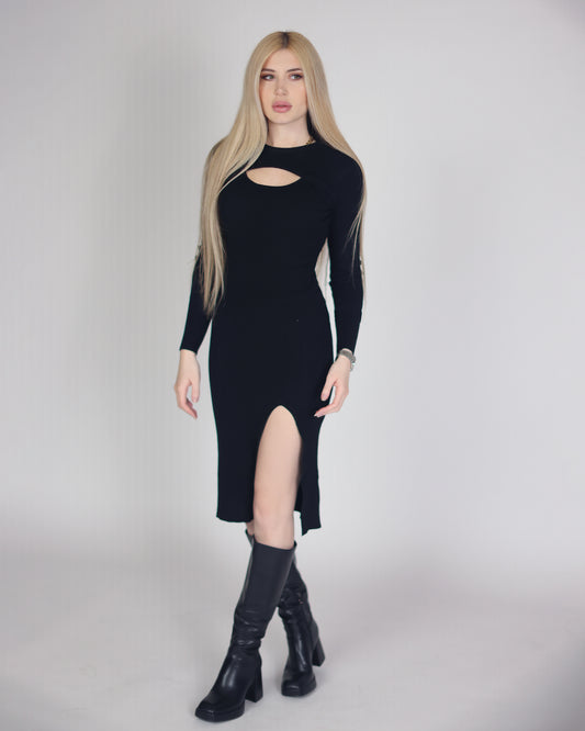 LONG CUT OUT DRESS - Black